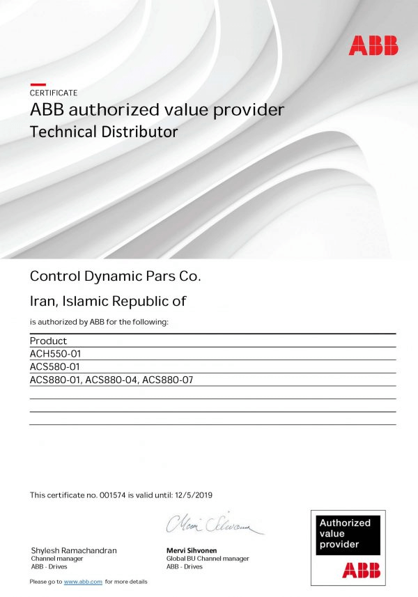مورد تایید و دارای گواهینامه رسمی شرکت ABB